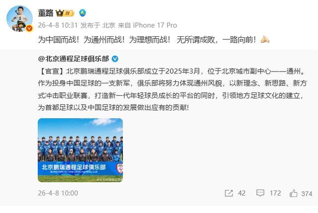 随后董路也转发写谈:为中国而战!为通州而战!为祈望而战! 无所谓成败,一皆上前!