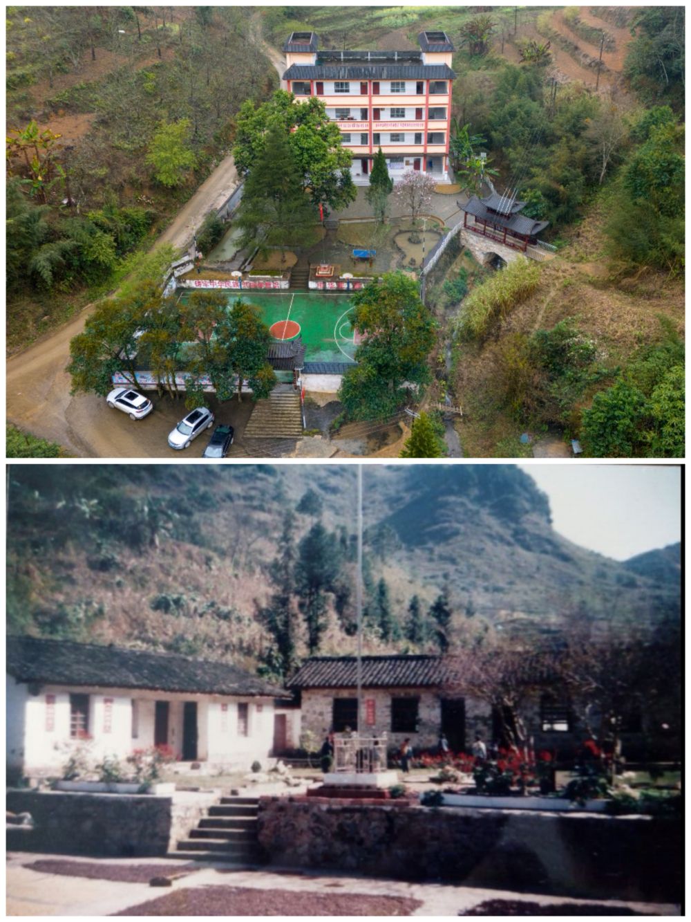 拼版相片:上图为2025年2月18日拍摄的落松地小学(无东谈主机相片,彭奕凯摄);下图为落松地小学旧貌(贵府相片,广南县委宣传部供图)。