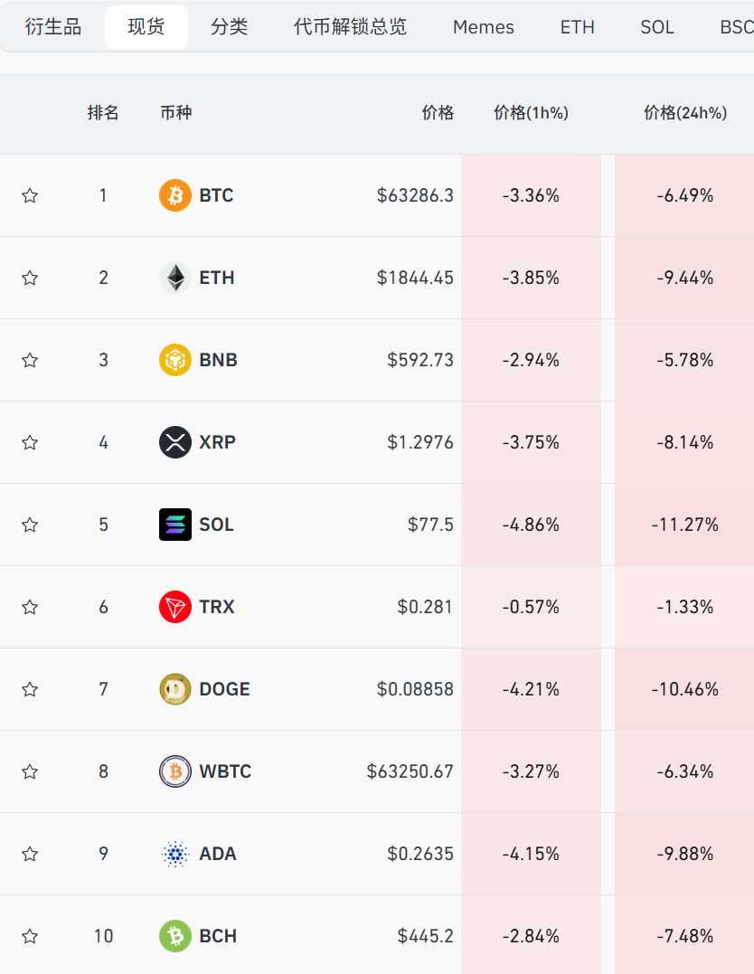 【导读】好意思以麇集蹙迫伊朗,加密货币集体跳水,比特币跌破63500好意思元