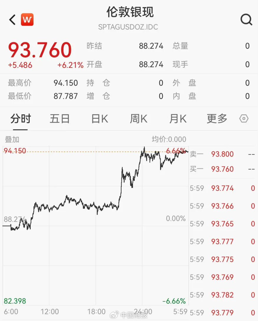 白银方面,什物白银紧缺,绿色动力和AI科技发展带来的工业需求让投资者不绝看好银价上升出路,纽约白银期价显耀上升。戒指收盘,纽约商品来往所5月交割的白银期价收于每盎司93.291好意思元,涨幅为6.52%。