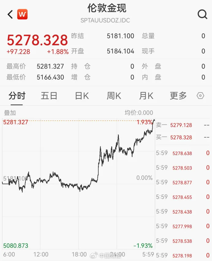 海外金价方面,2月27日,中东地缘弥留所在鼓吹市集避险厚谊升温,加之好意思元指数下落,海外金价上升,现货黄金最高报5281.327好意思元/盎司,创1月30日以来新高。戒指收盘,现货黄金涨1.88%,报收于5278.328好意思元/盎司。