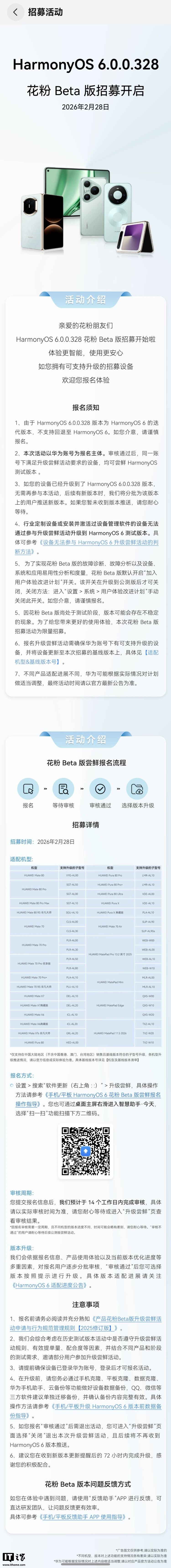 IT之家 2 月 28 日音信,开云体育华为鸿蒙HarmonyOS 6.0.0.328 花粉 Beta 版招募至本日(2 月 28 日)开启。
