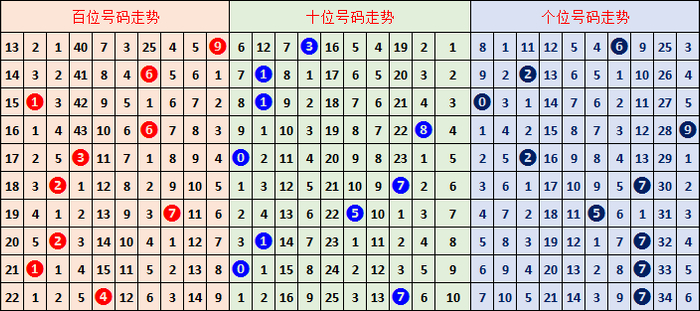 跨度分析:近10期跨度为:6,9,1,3,3,5,2,6,7,3,与前一期比较下落4个点位,本期预计跨度值不变,看好跨度3。