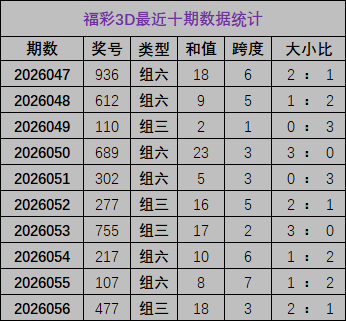 开奖细腻:福彩3D上期开奖号为477,和值为18,跨度3,其中奖号大小比为2:1