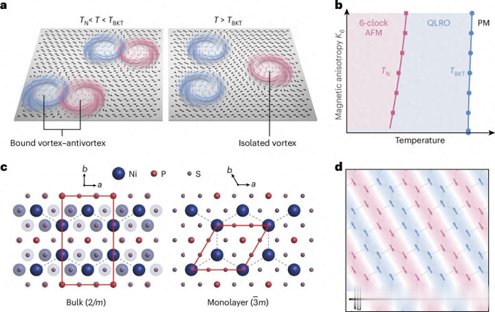 在凝华态物理与纳米技能的前沿赛说念,一项足以改写教科书的龙套性发现厚爱落地。2026年2月,好意思国得克萨斯大学奥斯汀分校的物理团队在《当然·材料》发表重磅效果,询查东说念主员初次在原子级厚度的三硫化镍磷(NiPS₃) 晶体中,完整不雅测到1970年代表面预言的二维六态时钟磁性与BKT拓扑相变序列,让悬置近50年的物理模子从纸面走向推行。这一发现不仅填补了二维磁性体系的表面空缺,更为超高密度存储、低功耗自旋芯片、量子传感等下一代信息硬件提供了全新的物理底层扶助,标记着东说念主类对纳米圭臬磁性的操控迈入拓扑精确调控时间。