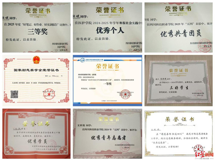 在大学,文欣悦获取过“优秀共青团聚”“三勤学生”“优秀后生志愿者”等诸多荣誉。文欣悦暗示,平时除学校奖学金外,我方也会作念一些兼职赚取生存费。母亲目下也曾知说念我方生病的事情,但不知说念病情的严重性,她暂时没敢告诉母亲一说念情况,怕母亲追忆。