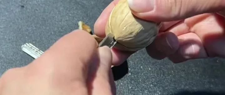 我家里那位爱吃核桃,可每次拿夹子夹,要么夹不动,要么一用劲连仁带壳碎一地。其后试了试用旧钥匙把核桃的尖头瞄准钥匙的齿槽,轻轻一瞥,就像开锁那样拧一下,核桃顺着纹路裂开了,统统仁完竣工整地出来,连碎渣皆莫得。