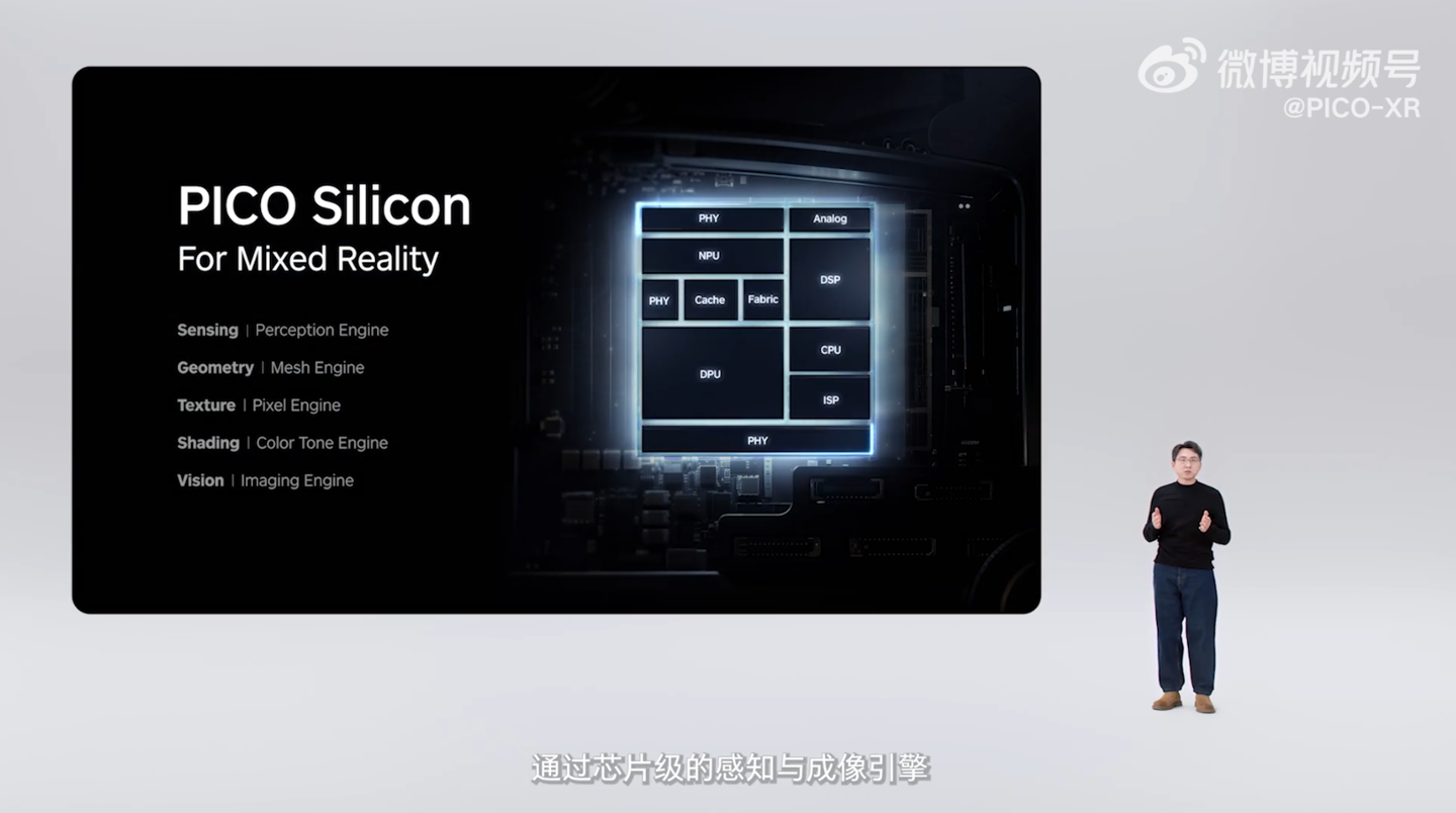 PICO 官方还自研了一块羼杂现实芯片,集成多种猜度单位,通过芯片级感知与成像引擎,可对多个传感器的数据进行低蔓延的理会与交融。PICO 官方暗意,其终昭彰超高画质、精确定位、褂讪眼早先动跟踪,况且扫数系统的端到端蔓延唯有 12 毫秒。