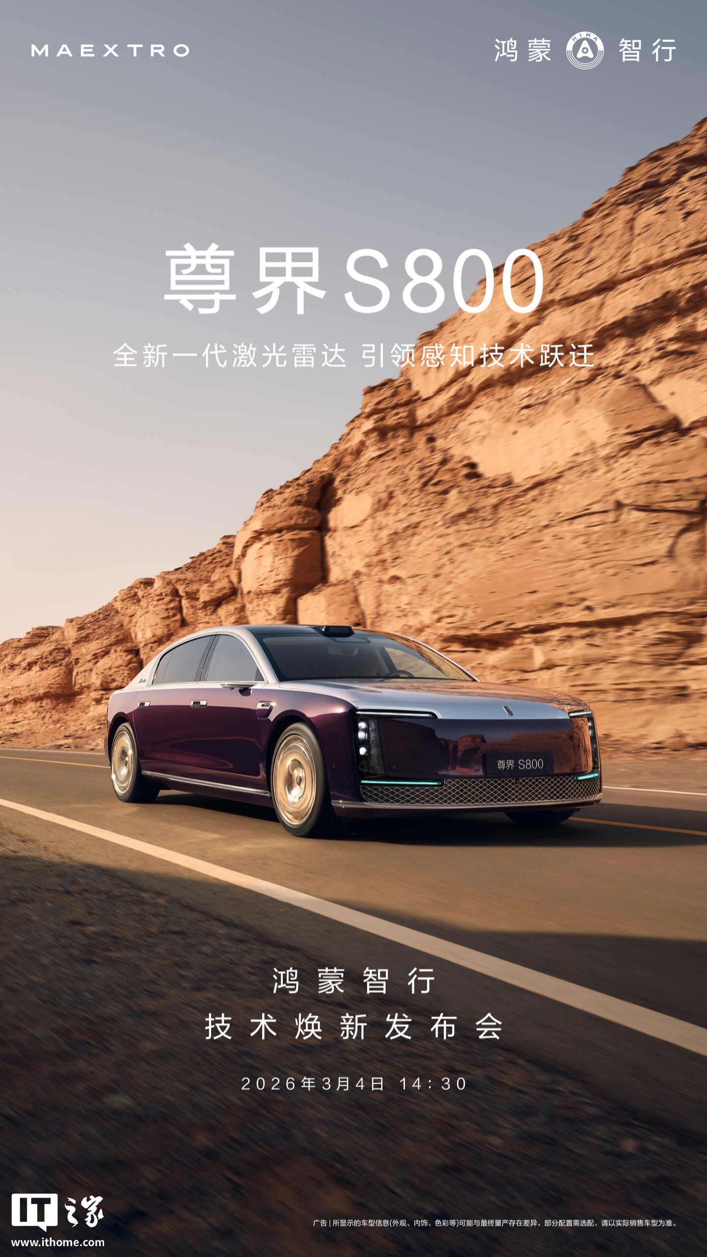 IT之家 3 月 2 日音讯,华为末端官方当天文告,尊界 S800 和问界 M9 将首发搭载群众量产最高线束激光雷达,主打“超高清、超精确、超远距”。